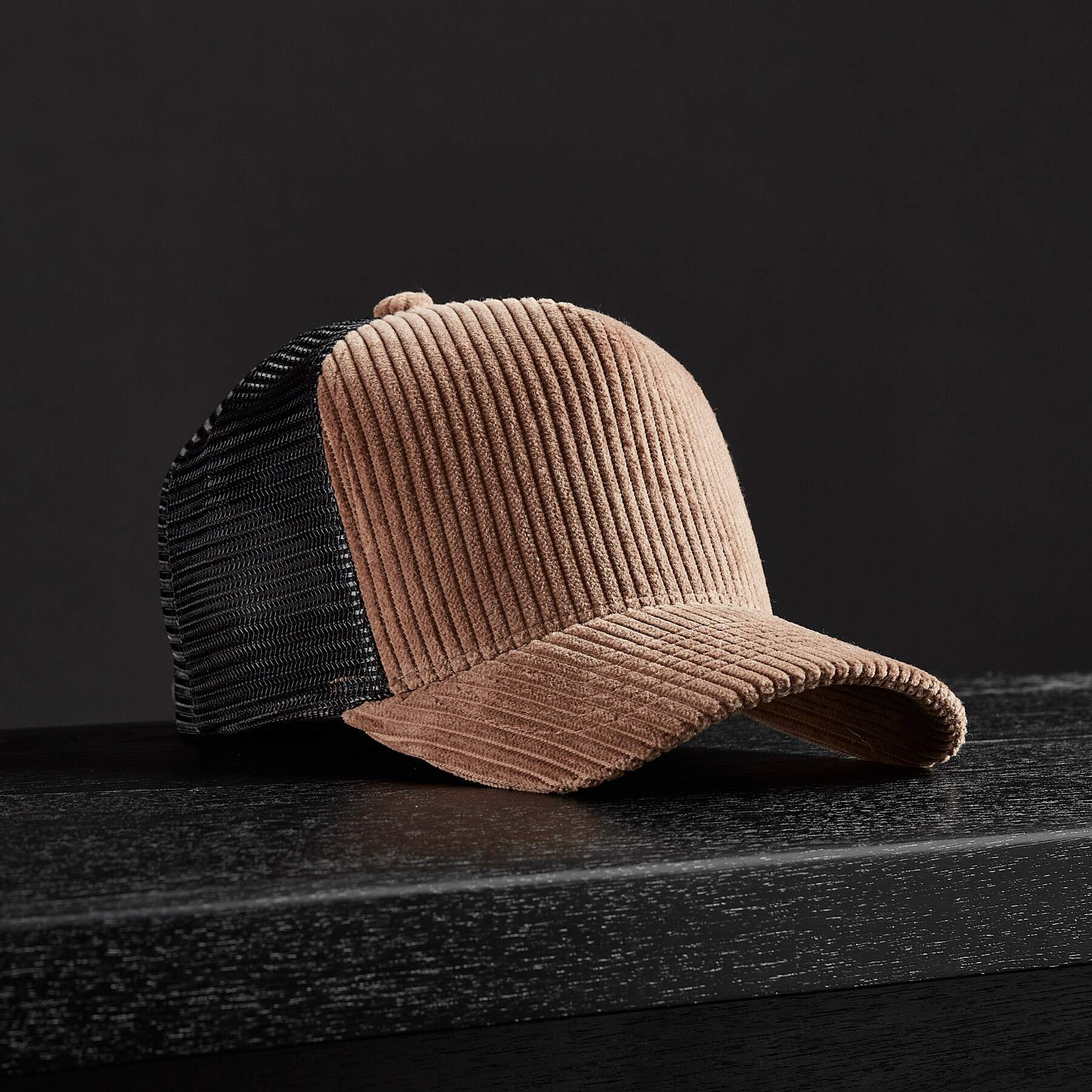 Our Corduroy Trucker Hat is made of a wide wale corduroy with robust texture. Style details include an adjustable mesh back.
