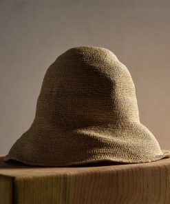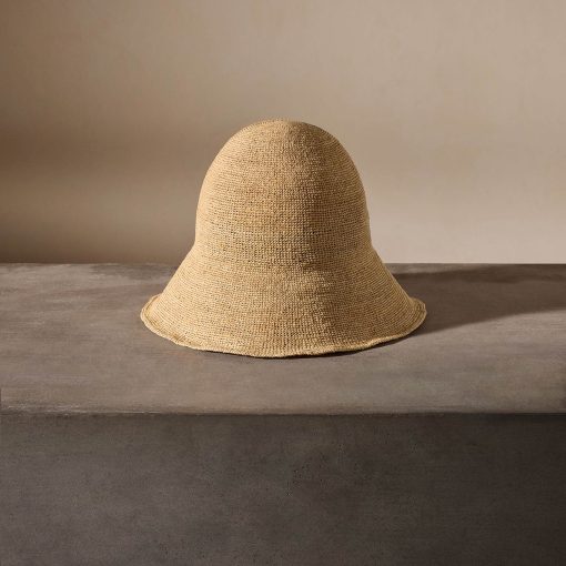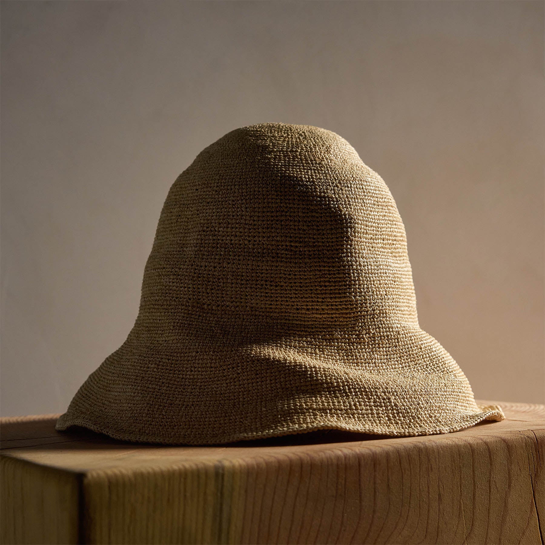 Janessa Leone Teagan is made from straw harvested from the frond leaf in Madagascar and hand-crocheted into a light, durable fiber. Is malleable shape make it ideal for packing with you on any journey. This raffia bucket hat provides structural design capability in the brim, allowing for any shape alterations