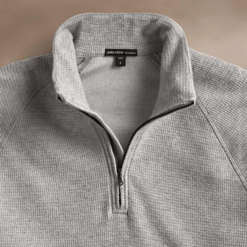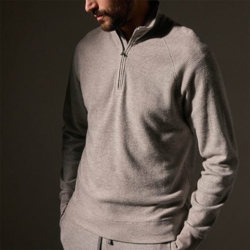 Our Brushed Thermal Half Zip is made in a luxe brushed thermal knit comprised of a cotton and cashmere blend. Style details include funnel neck with zipper closure, raglan sleeves, ribbed cuffs, clean finished bottom hem. Relaxed fit