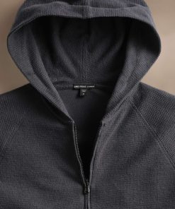 Our Brushed Thermal Zip Up Hoody is made in a luxe brushed thermal knit comprised of a cotton and cashmere blend. Style details include hood, zipper closure, kangaroo pockets, ribbed cuffs, clean finish bottom hem. Relaxed fit.
