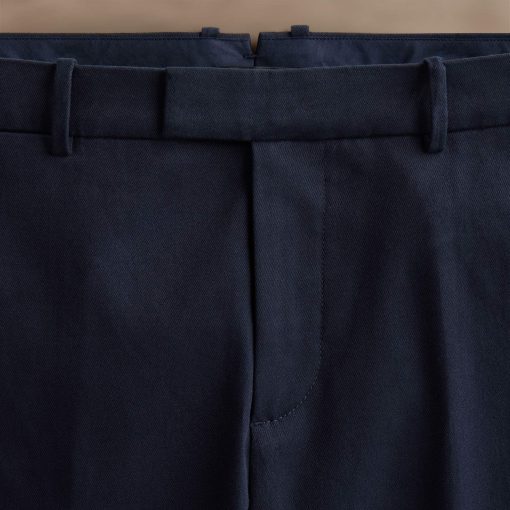 Our Cotton Cashmere Twill Trouser is made in Italian cotton cashmere blend fabric. A touch of cashmere gives a soft hand feel yet elevated look. Style details include traditional trouser construction, functional fly, slash front pockets, back pockets, and blind hem. Slim trouser fit.