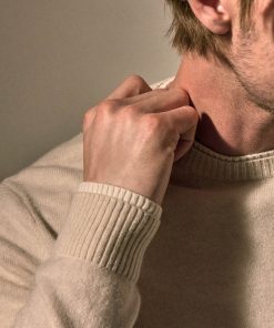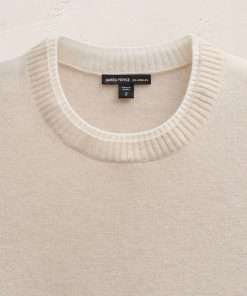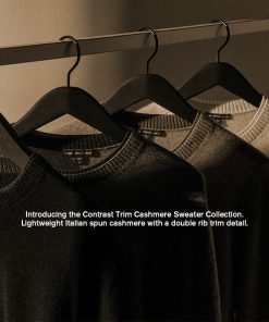 Lightweight, soft Italian spun cashmere. Double ribbed trim at neck and cuff with contrast inner layer. Clean shoulder detail.