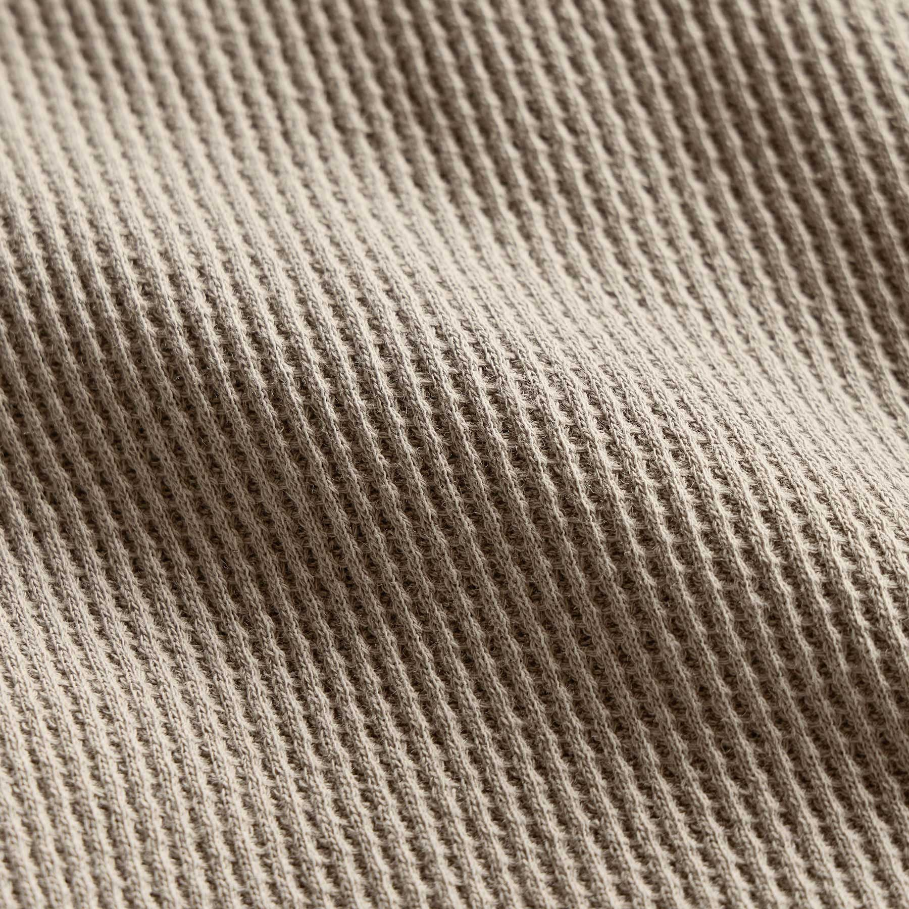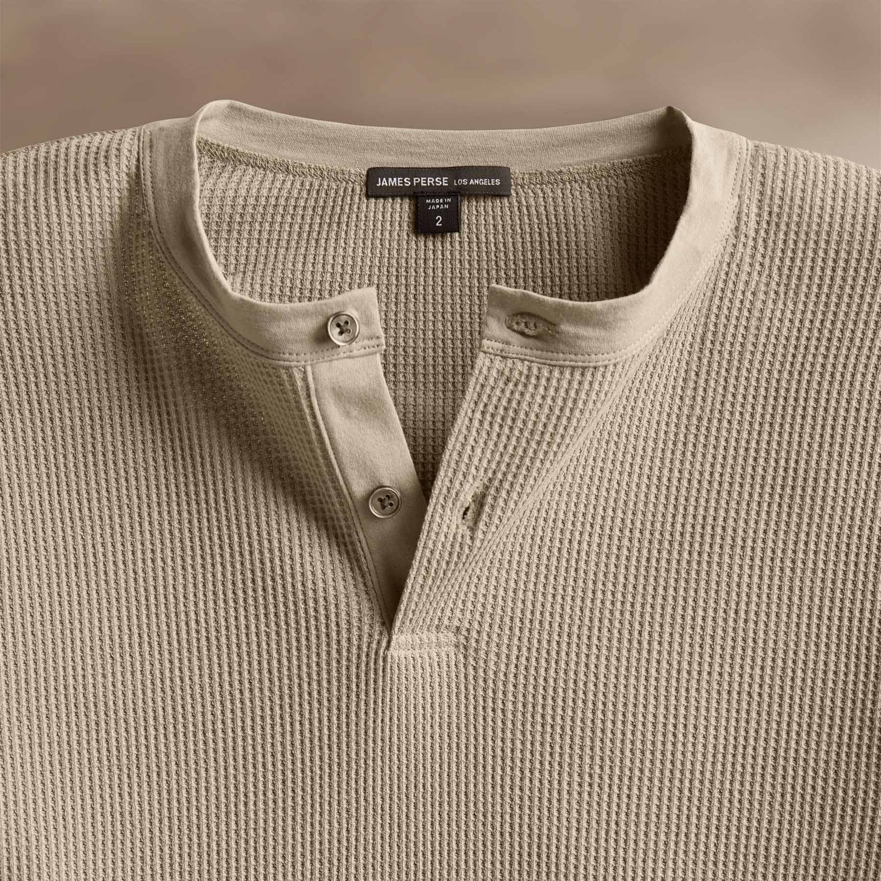 Our Cotton Linen Waffle Henley is made from a Japanese Cotton Linen Blend. This textured knit is lightweight for the warmer weather. Style details include a jersey binded button front placket and overlock hems. Classic fit.