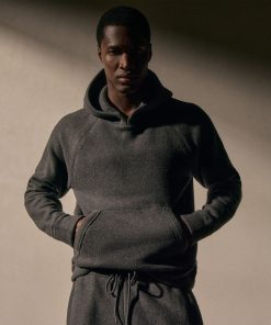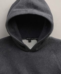 Our Cozy Hooded Sweatshirt is made of warm but lightweight cotton fleece blend from Italy. Style details include double layer hood with binding, full length raglan sleeves, cuffed sleeves and bottom hem, kangaroo pocket with binding. Relaxed fit.