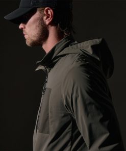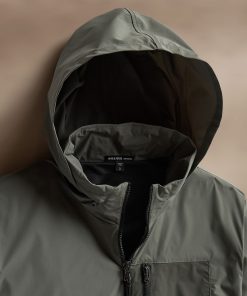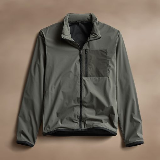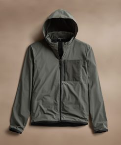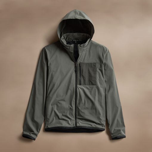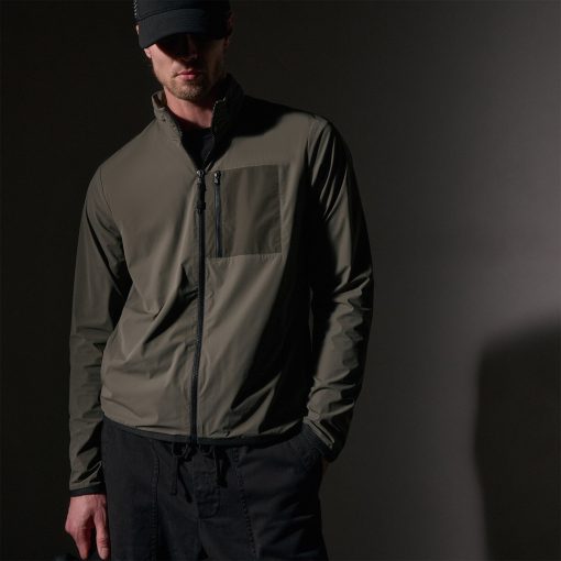 Our Outdoor Sport Jacket is made with water repellant Italian fabric. This unique nylon fabric is lightweight with bi-stretch for comfort and function. Style details include retractable hood, mesh lining throughout, zippered front left chest pocket, and stretch binding at cuffs and bottom hem. Relaxed fit.
