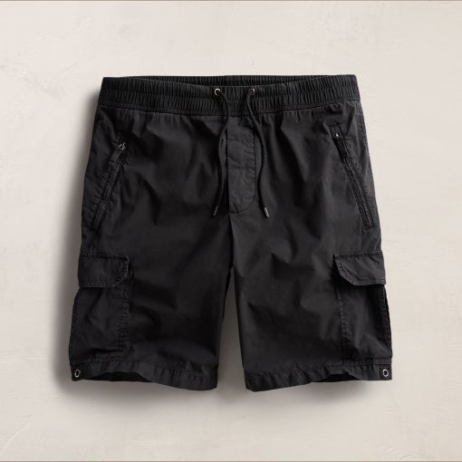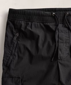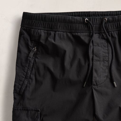 Italian stretch supima poplin. Micro canvas elasticized waistband with drawcord and button fly. Front double welt pockets with zippers and side cargo pockets. Natural lofty, laundered look.