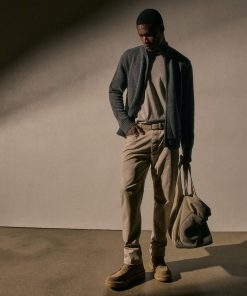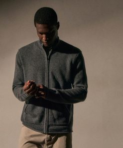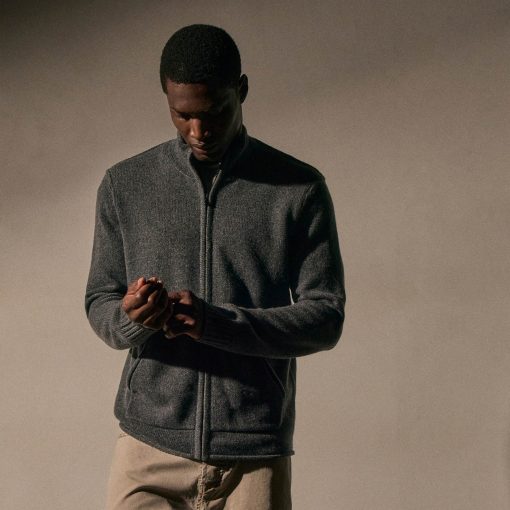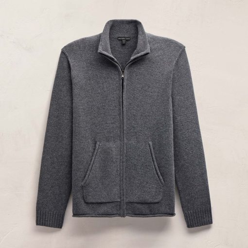Our Recycled Cashmere Full Zip Sweater is made from 100% recycled cashmere from recycled fibers. Style details include a funnel neck, exposed linking at shoulder and armhole, full length sleeves with rib trim center front zipper and kangaroo pocket. Double ply.