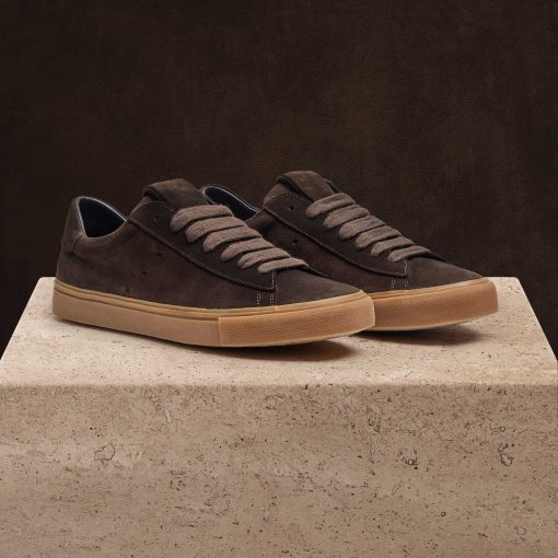 Made in Italy from 100% calf‑suede with a Napa leather lining, the Men’s Suede Retro Sneaker revisits classic court styling with a clean low profile, tonal laces, and a honey‑toned (Miele) vulcanized‑rubber sole. A soft, relaxed fit with cushioned insoles ensures all‑day comfort