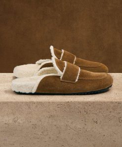 This easy slip on loafer is made from a soft suede and features a top strap detail. This style is lined in faux shearling and is set on a supportive molded cork foot bed.