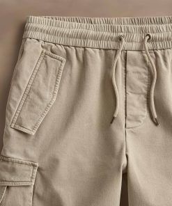 Our Cotton Terry Cargo Short is made with heavier Italian fabric that is structured yet soft hand feel. This pant has 4-way stretch and elasticized pull on lightweight canvas waistband with drawcord for comfort. Style details include flap front and back pockets, side cargo pockets, and functional fly. Garment dyed. Relaxed fit.