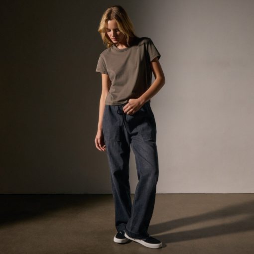 Our Shrunken Crew Neck S/S Tee is made in a super soft brushed Lotus jersey from Japan. Style details include binded crew neckline and clean finish hems. Slightly cropped.