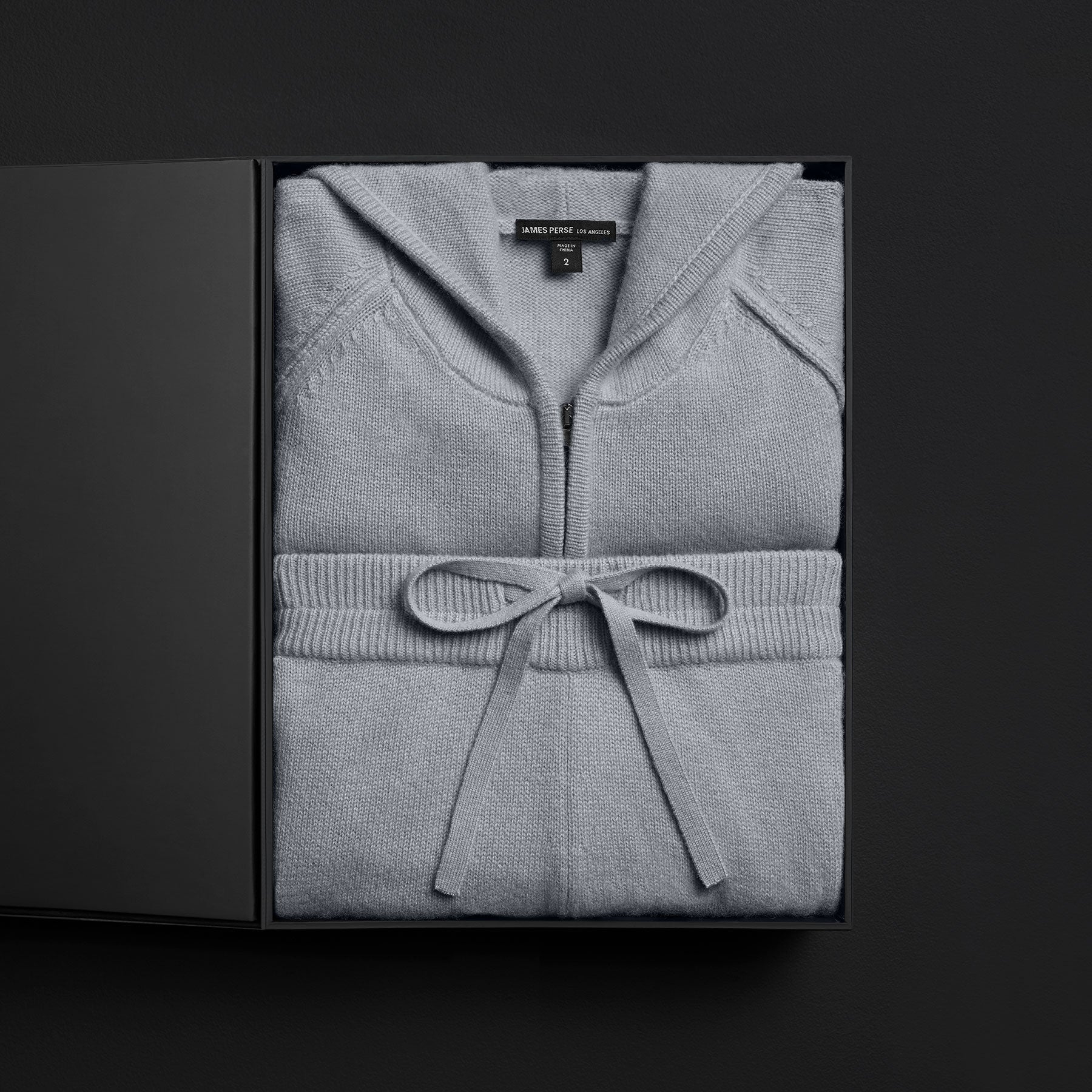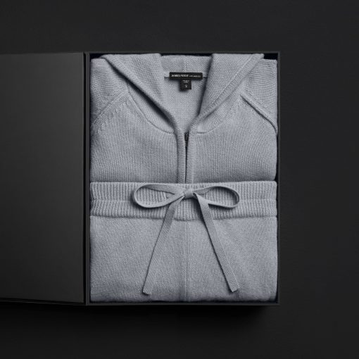 Women’s cashmere track suit gift set, presented in a custom James Perse box.