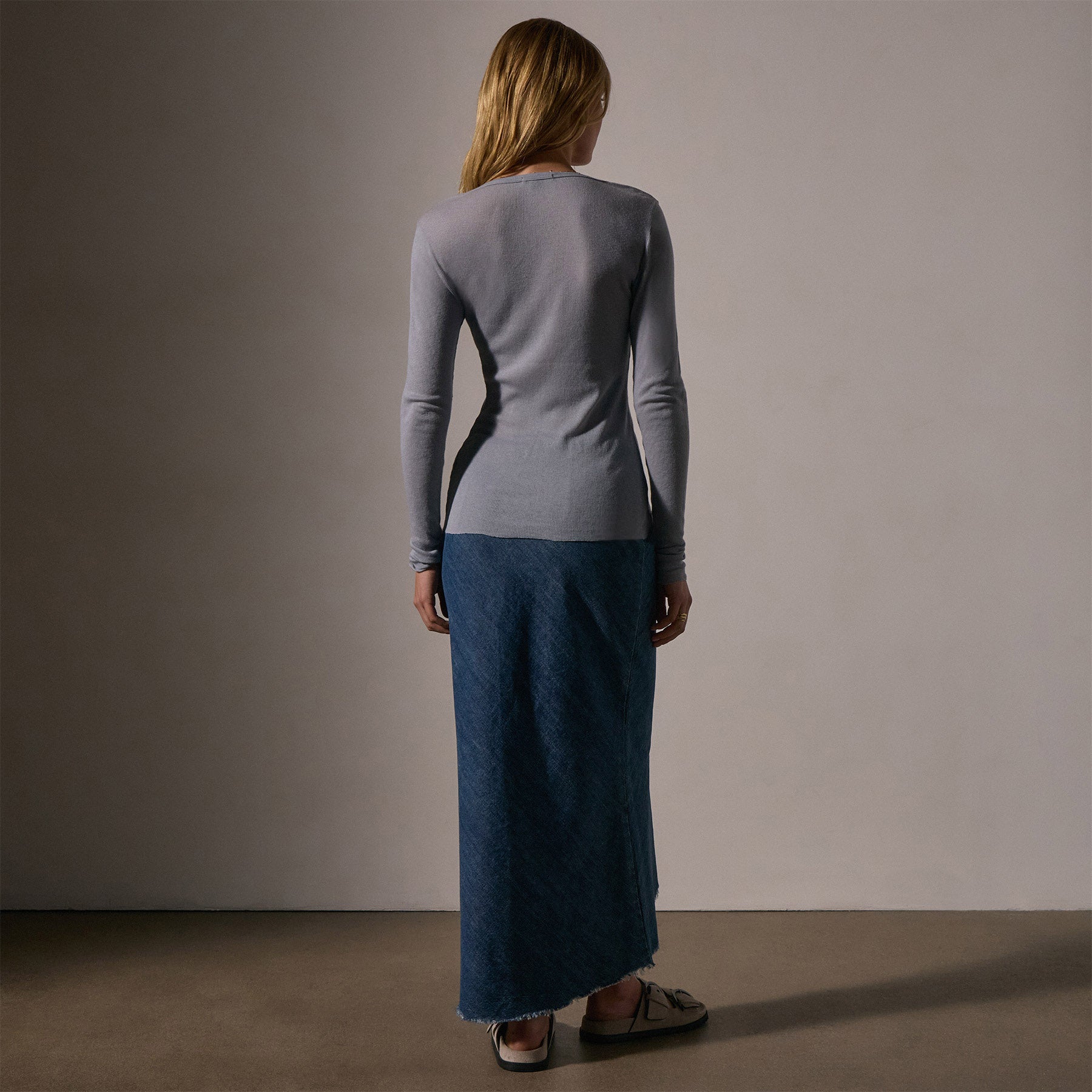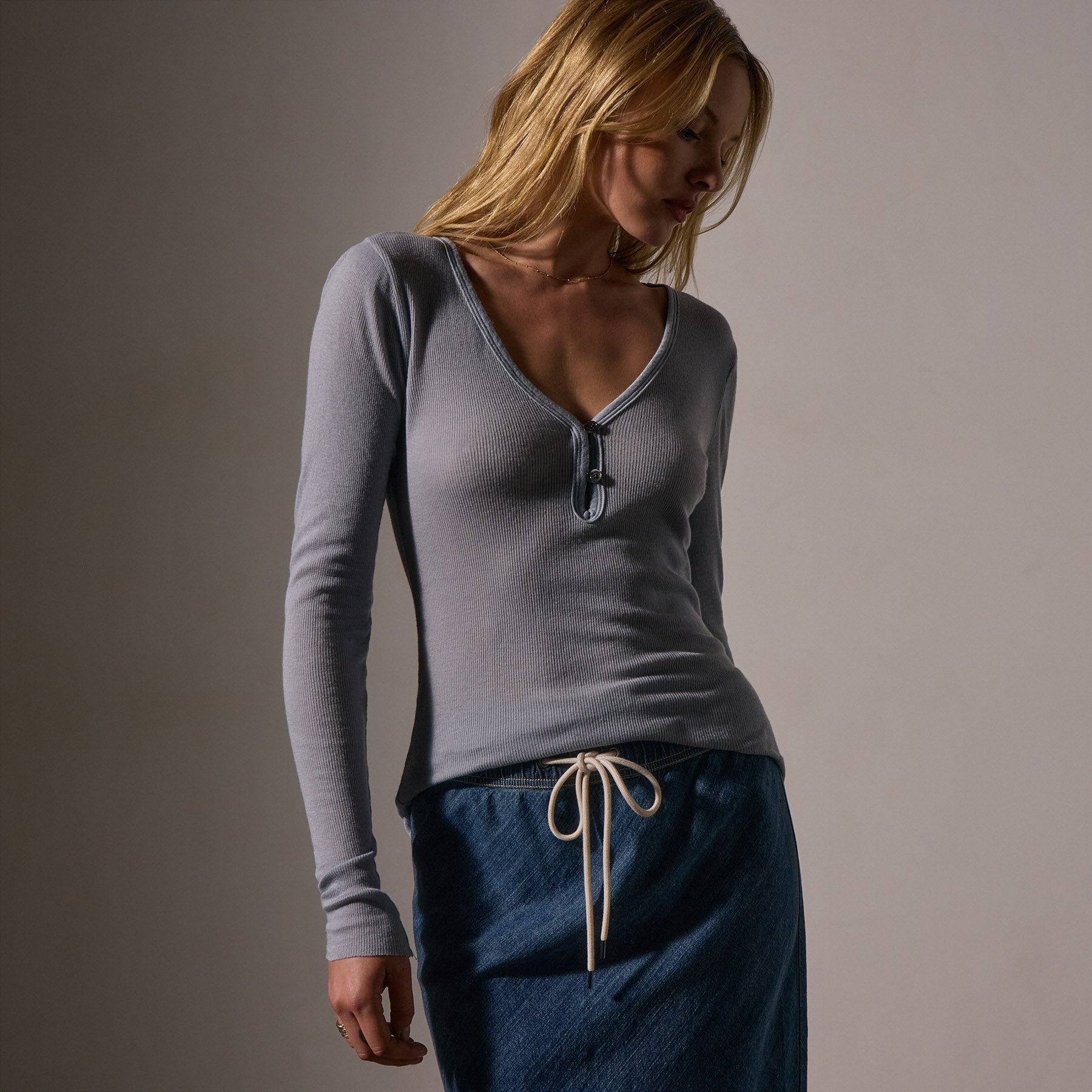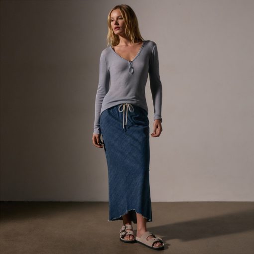 Our Cotton Cashmere Rib Henley is a super fine, light rib Japanese fabric.The fabric is lightweight yet has a luxuriously soft hand.Style details include deep V neckline, 2 button closer, raw edge at bottom opening & sleeve. Fitted
