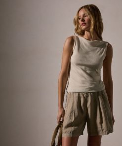 James Perse Women’s Cotton Cashmere Rib Boat Neck Top | Ivory
