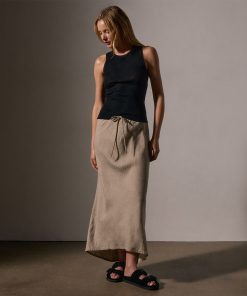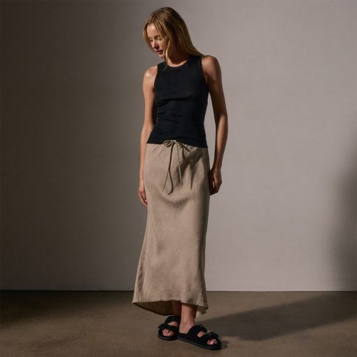 Our Cotton Cashmere Rib Shell Tank is made in a super fine, lightweight rib from Japan. The fabric has a luxuriously soft hand feel. Style details include single layer, jersey binding at neckline and arm openings, raw hem at waist. Fitted.
