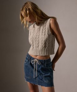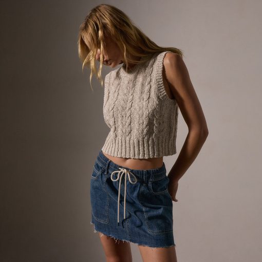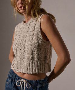 James Perse Women’s Cotton Linen Cable Knit Vest | Natural