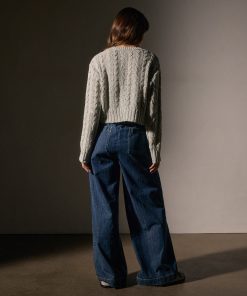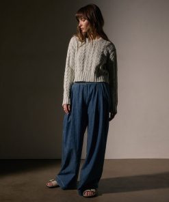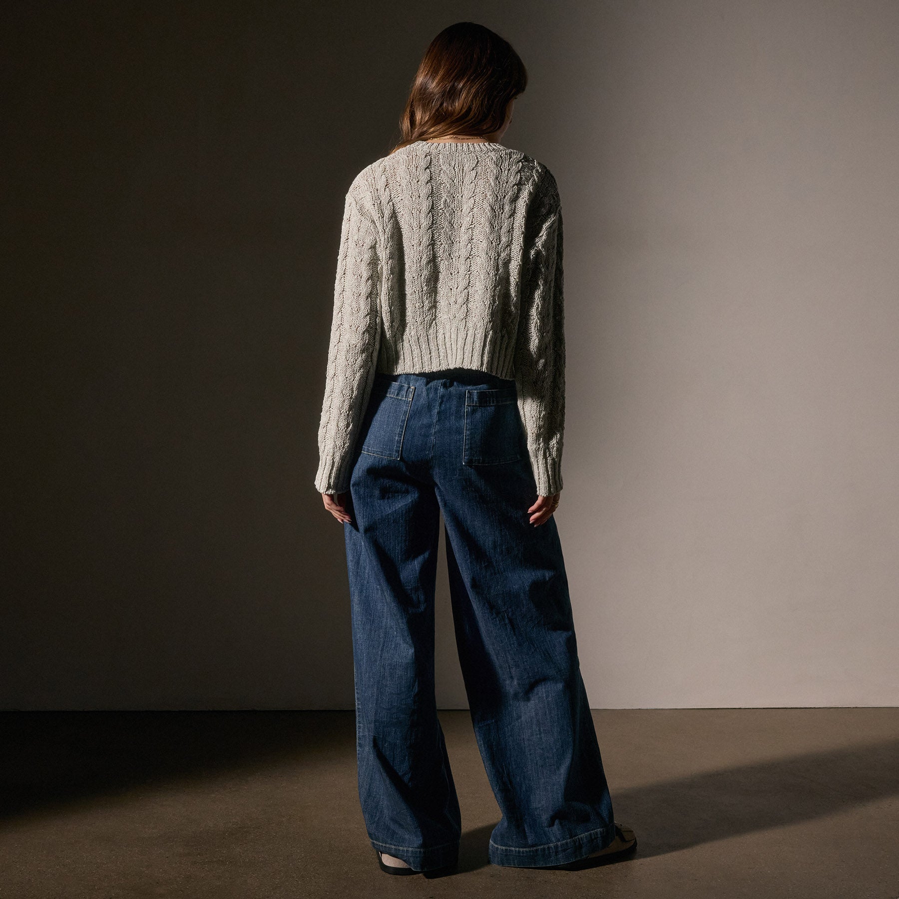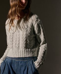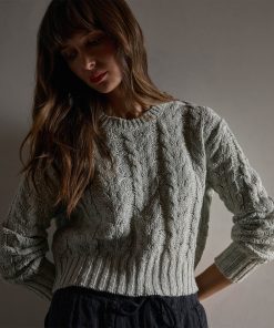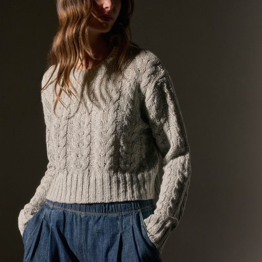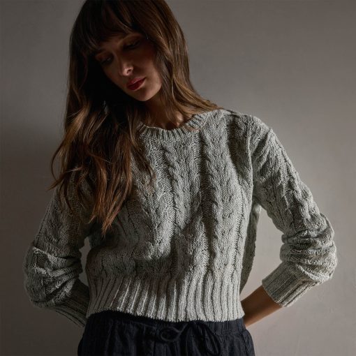 Our Cotton Linen Cable Knit Sweater is made from an Italian cotton and linen blend yarn that features visible textures with highs and lows. Style details include chunky cable knit stitch, wide ribbed cuffs and bottom hem. Boxy fit.