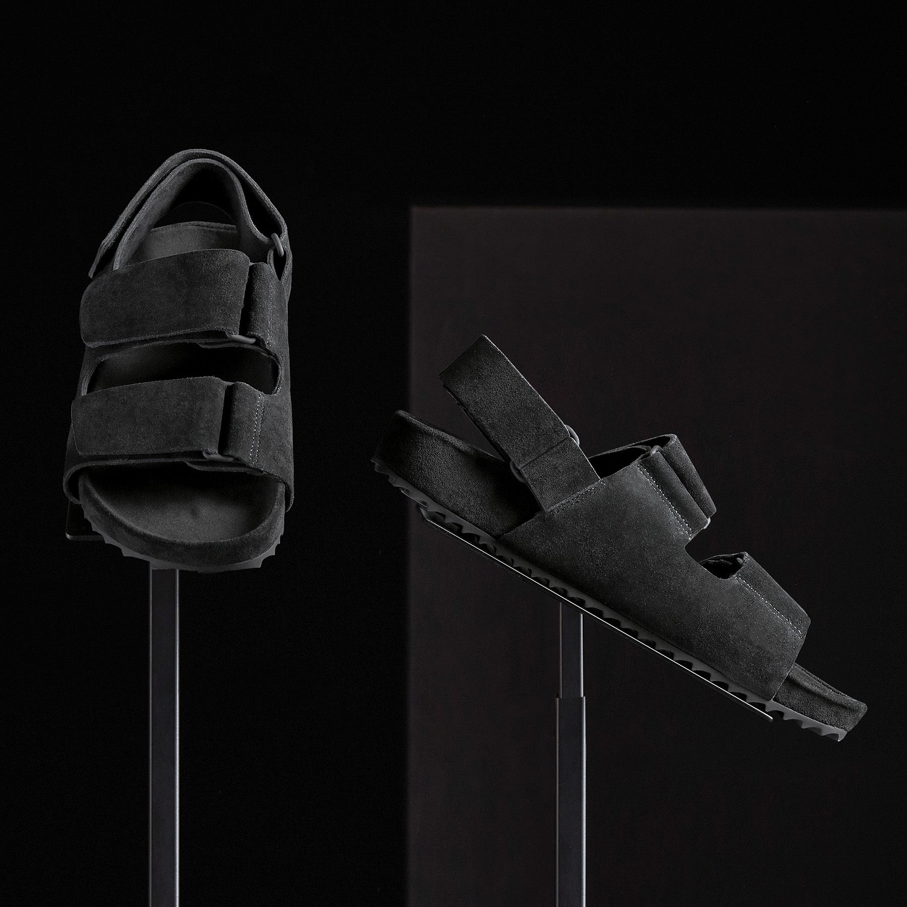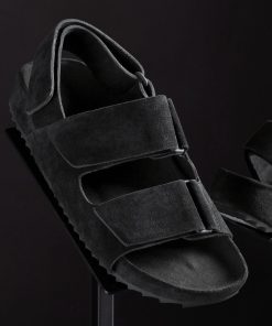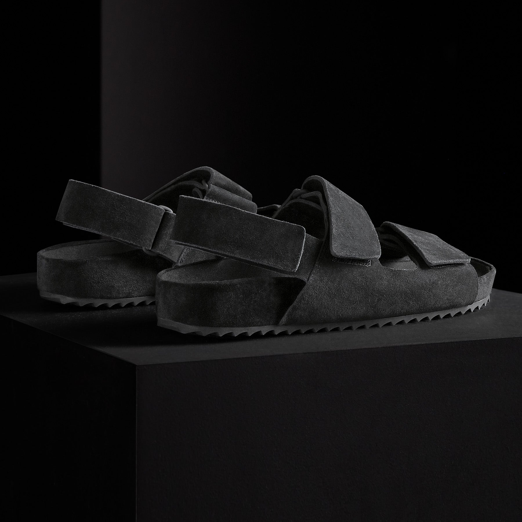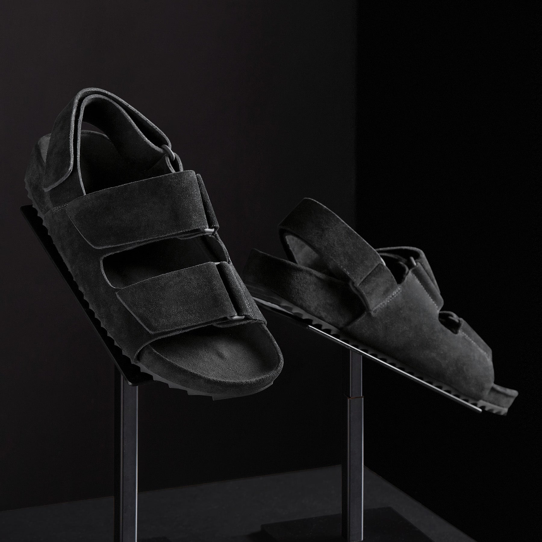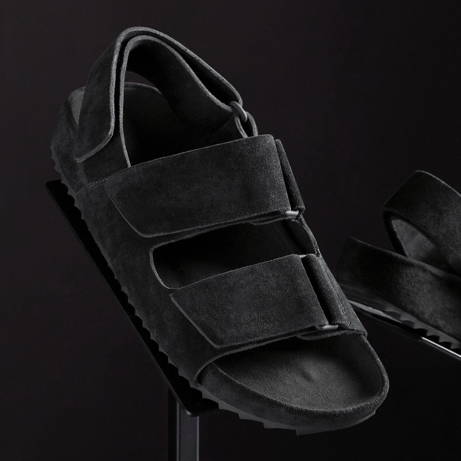 Our double strap Velcro sandal is made in soft suede with adjustable straps. This sandal is set on a supportive molded foot bed with an all suede lined insole and rubber outsole.