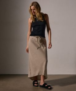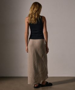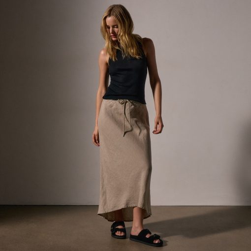 Our High Low Linen Skirt is made in our classic lightweight linen that is breathable and soft. Style details include self waistband with drawcord, slightly high low hem, clean finished hemline and cut on the bias for a flattering fit. Garment dyed.
