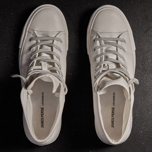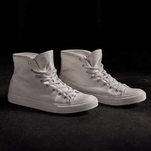 Our High Top Vulcanized Sneaker is perfect for everyday wear. Style details include a canvas material, matte finish eyelets and a flexible, yet durable rubber sole. Minimal aesthetic with contrast stitch on the Squid colorway.