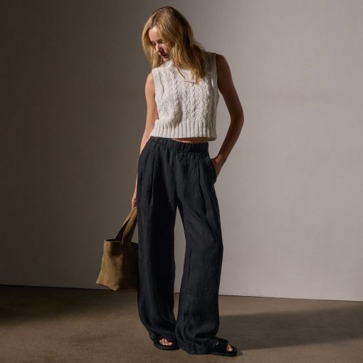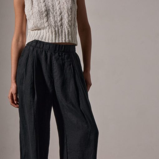 Made in our classic lightweight linen that is breathable and soft. Wide, full-length leg shape, pleats in the front, front slash pockets. Elasticized waistband and a clean finish hem