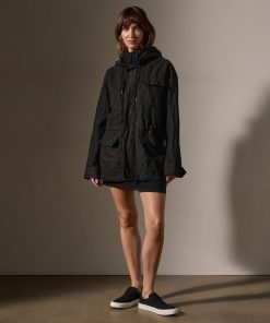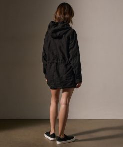 Our Linen Parka is made from a novelty Italian linen fabric and features visible texture. This jacket offers both style and functionality with its oversized utility pockets, concealed zip front closure with hidden snaps, hidden drawcord waist, and hood. Garment Dyed.