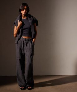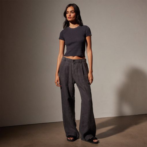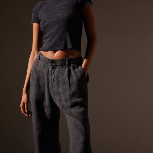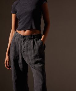 Our Linen Pleated Pant is made in a heavier version of our classic linen fabric. This style is garment dyed which creates visible slub texture with high’s and low’s. Style details include tailored waistband at front & elasticized at back, onseam pockets, functional zipper and front pleats. Garment dyed. Relaxed fit.