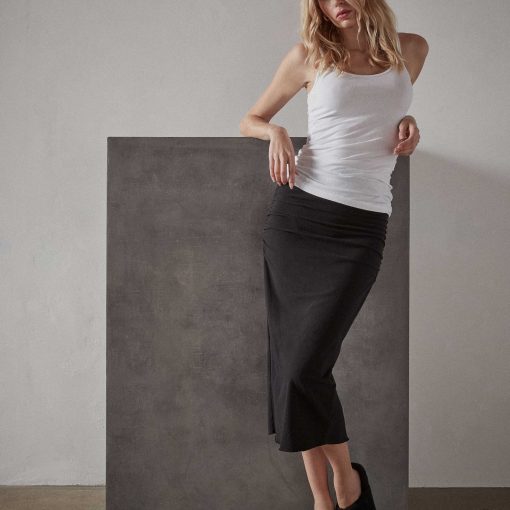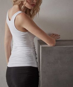 Our Long Jersey Tank is made in supima cotton with added stretch for ultimate comfort. Style details include a scoop neckline, binding at neck and armhole and a coverstitched bottom hem. Fitted to the body. Garment dyed with extra softeners for a soft, lived in feel.