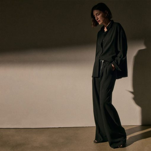 Italian fabric. Redefines modern tailoring. Functional fly and belt loops. Front slash pockets. Front pleats with a fluid drape leg.