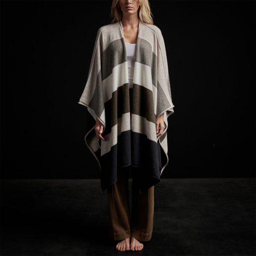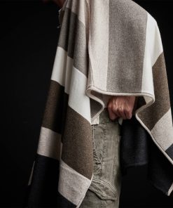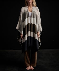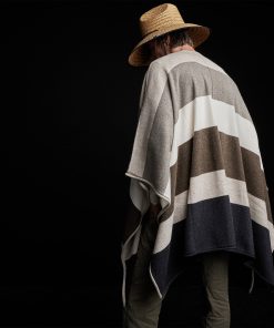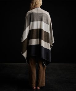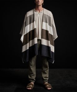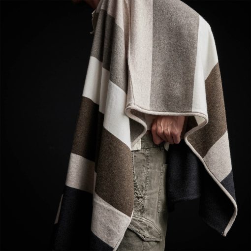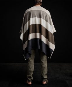 Our Recycled Cashmere Multi Striped Poncho is made of recycled cashmere fibers. Style details include exposed linking at shoulder seams, center back seam, rolled edges.Unisex: One Size Fits Most