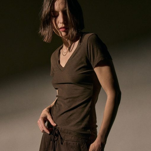 Our Sheer Slub V Neck Tee is made in our classic 100% cotton slub. This style uses the reverse side of the fabric for added texture. This style is fitted to the body with a binded v neck and straight bottom hem. Garment dyed in extra softeners for a soft lived in feel.