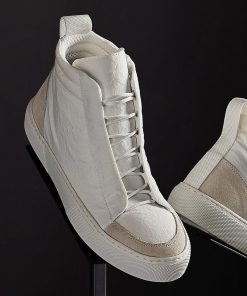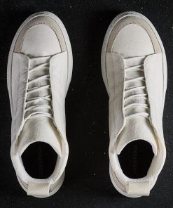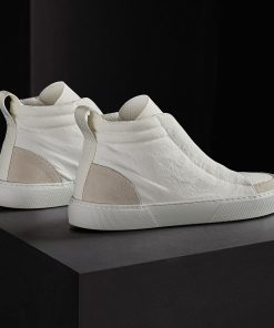 Our Solstice Skate High Top Sneaker is made in a crisp matte nylon and features a modern lace up detail with hidden eyelets. Mesh inner lining is used for comfort and breathability. Suede trim adds a luxurious edge to this casual, everyday shoe.