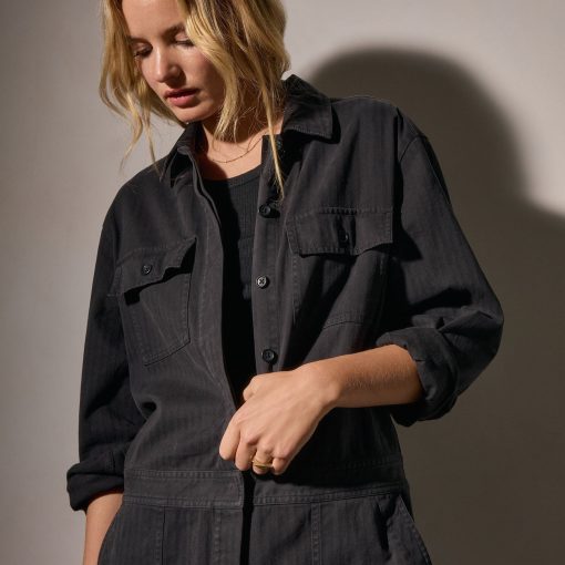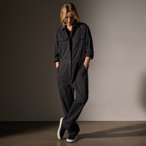 Our Stretch Herringbone Jumpsuit is crafted from premium Italian brushed herringbone fabric. This vintage-inspired utility jumpsuit includes two patch pockets at the chest, adjustable tabs on the back waist band, concealed front buttons and built-in stretch provides ease of movement and all-day comfort. Relaxed fit.