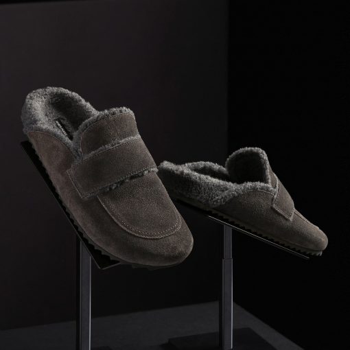 James Perse Women’s Suede Shearling Loafer | Ash & Heather Grey | Women’s Shoes