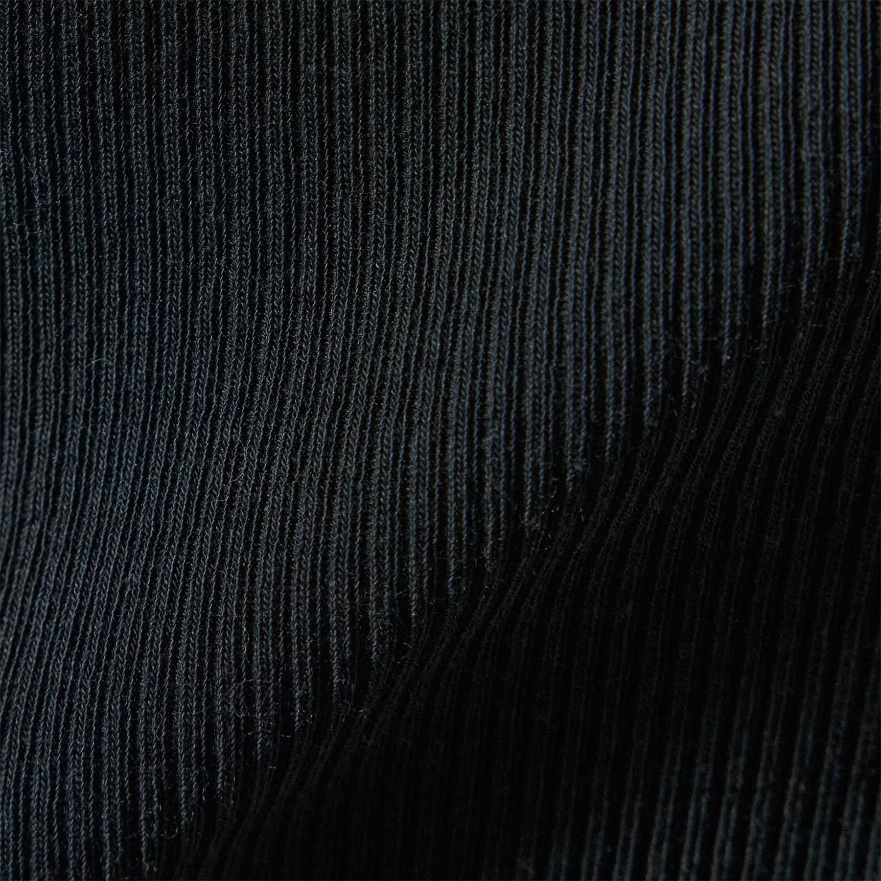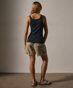 Made from a tubular rib from Japan. Binding at neck and armhole, raw edge bottom opening