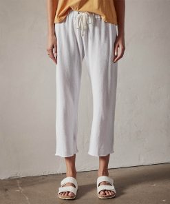 Our Vintage French Terry Cutoff Sweatpant is made in our classic lightweight supima cotton terry. Style has a relaxed fit with an elasticized waistband, drawcord and a straight, slightly cropped leg with raw hems. Garment dyed with extra softeners for a soft, lived in feel.
