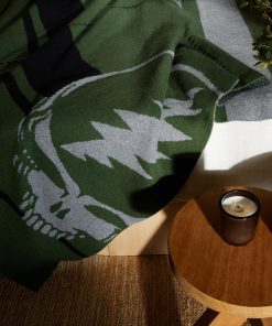 James Perse Accessories Grateful Dead Cashmere Blanket | Military Green & Grey Smoke & Black